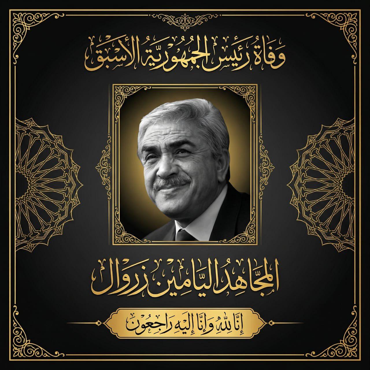 وجاء في البيان: “على إثر وفاة رئيس الجمهورية الأسبق المجاهد اليامين زروال، تعلن رئاسة الجمهورية حدادا وطنيا لثلاثة أيام ابتداء من اليوم، على كامل التراب الوطني، وفي الممثليات الدبلوماسية بالخارج مع تنكيس العلم الوطني”